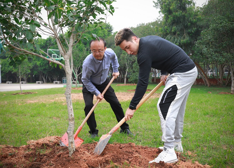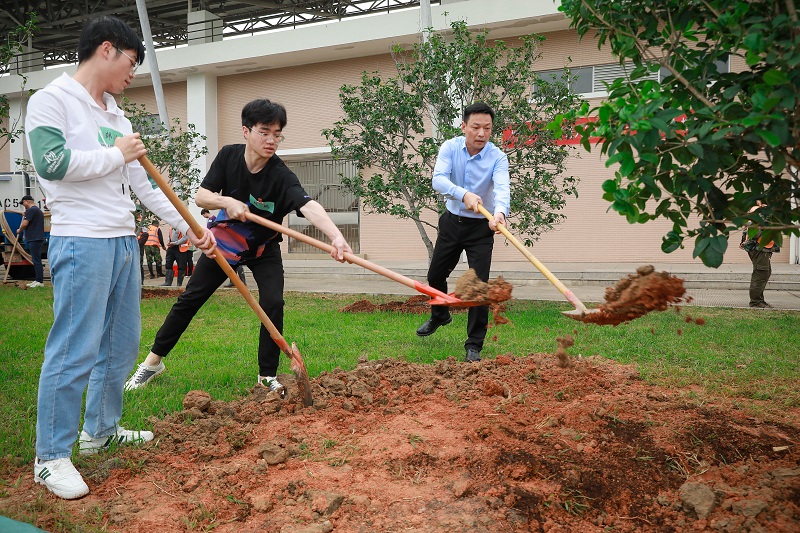 我校举办“六个一起”育人行动之校领导与学生一起劳动植树活动