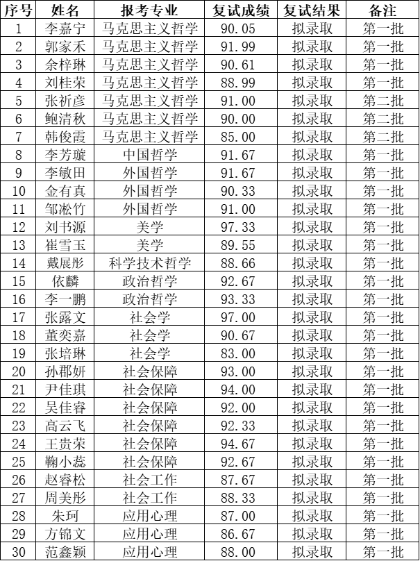 哲学社会学院2026年接收推免成绩及拟录取名单公示