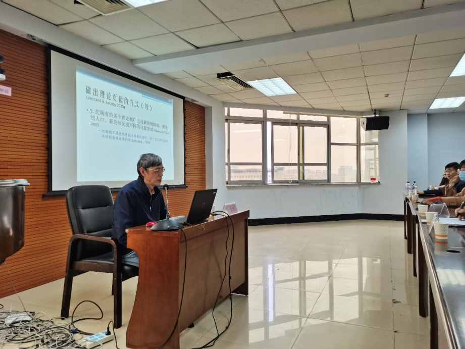 王宁教授以《社会科学中的理论建构》为主题进行了质性研究的方法论研究座谈。其中,王宁教授首先讲述了关于某一现象的理论未决状态与理论建构的社会过程,向大家指出了质性研究的整体研究流程,随后向大家介绍了定性研究中研究者需要采用的优秀的理论标准应该是什么样子。重点讲述了16种理论贡献的评价标准,在讲述的过程中王宁教授细心的在进行理论阐述的同事辅之以各种生动现实的例子,方便参会的师生理解。在结束重点阐述的部分后,王宁教授介绍了新的理论模式,即调整理论在研究中的位置以求最终结果的最优化。王宁教授在演讲结束后积极与师生互动,并回答相应问题,与会师生表示收获颇多。