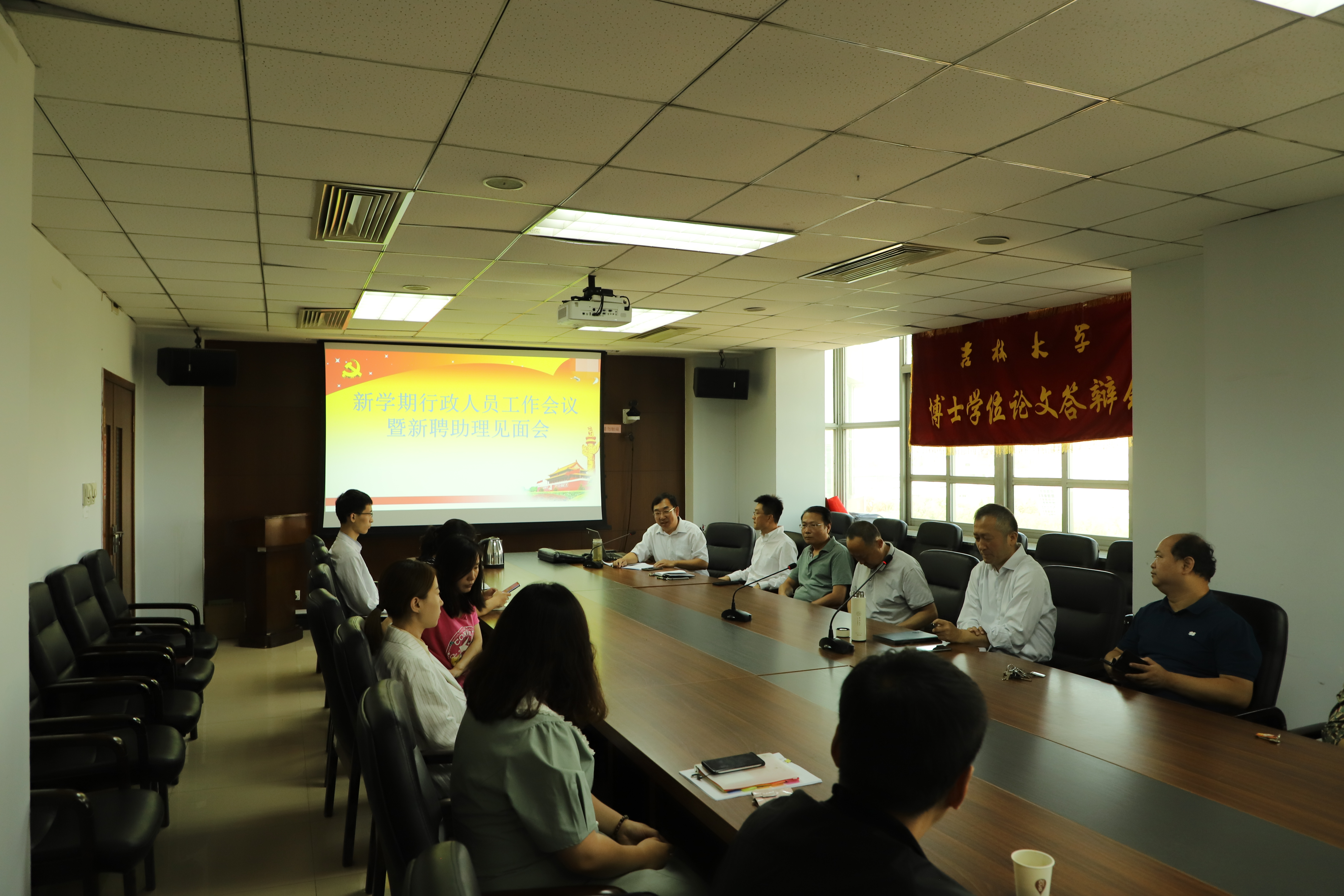 新学期正式开学的第一天,哲学社会学院召开新学期行政工作会暨新聘助理见面会,学院领导班子成员、全体行政人员和新聘短期助理参加了会议。会议由行政副院长朱文君主持。