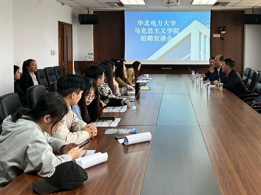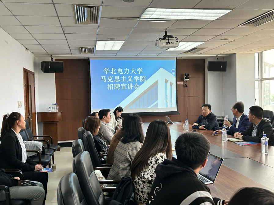 为积极促进学生就业,进一步提升研究生的就业竞争力,华北电力大学马克思主义学院(保定校区)于2023年5月6日14:30来院举办博士专场招聘宣讲会。华北电力大学马克思主义学院副书记兼副院长王建红教授、祁松林老师、康超老师、哲学社会学院院长白刚教授、研究生辅导员于洋及哲学社会学院、马克思主义学院部分博士研究生参加宣讲会。