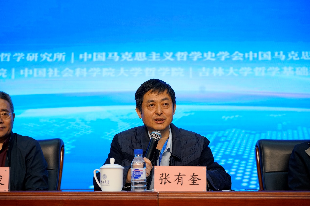 白刚提出,很荣幸也很高兴,会议的主办方——中国社会科学院哲学研究所,把中国马克思主义哲学史学会中国马克思主义哲学研究分会2023年年会、暨第三届“中国马克思主义哲学30人论坛”,交给吉林大学哲学社会学院来承办。“中国马克思主义哲学30人论坛”,因其主题的“时代性”和问题的“前沿性”和会议的规格高,已迅速成为了当代中国学术界的一个知名品牌。吉林大学哲学系被国内学界赞誉为“有哲学的哲学系”,希望参会的专家学者和广大青年朋友,继续多多关心和支持吉大哲学的发展。