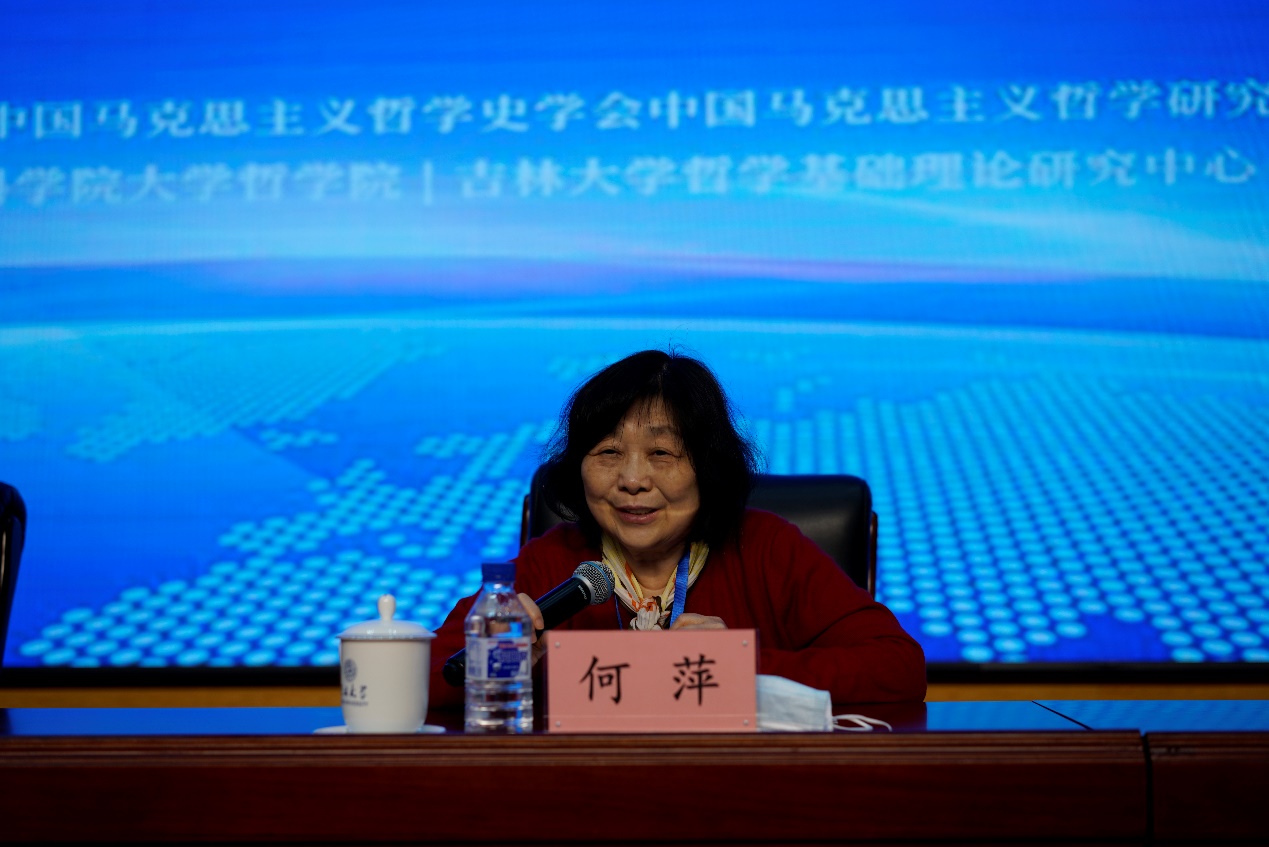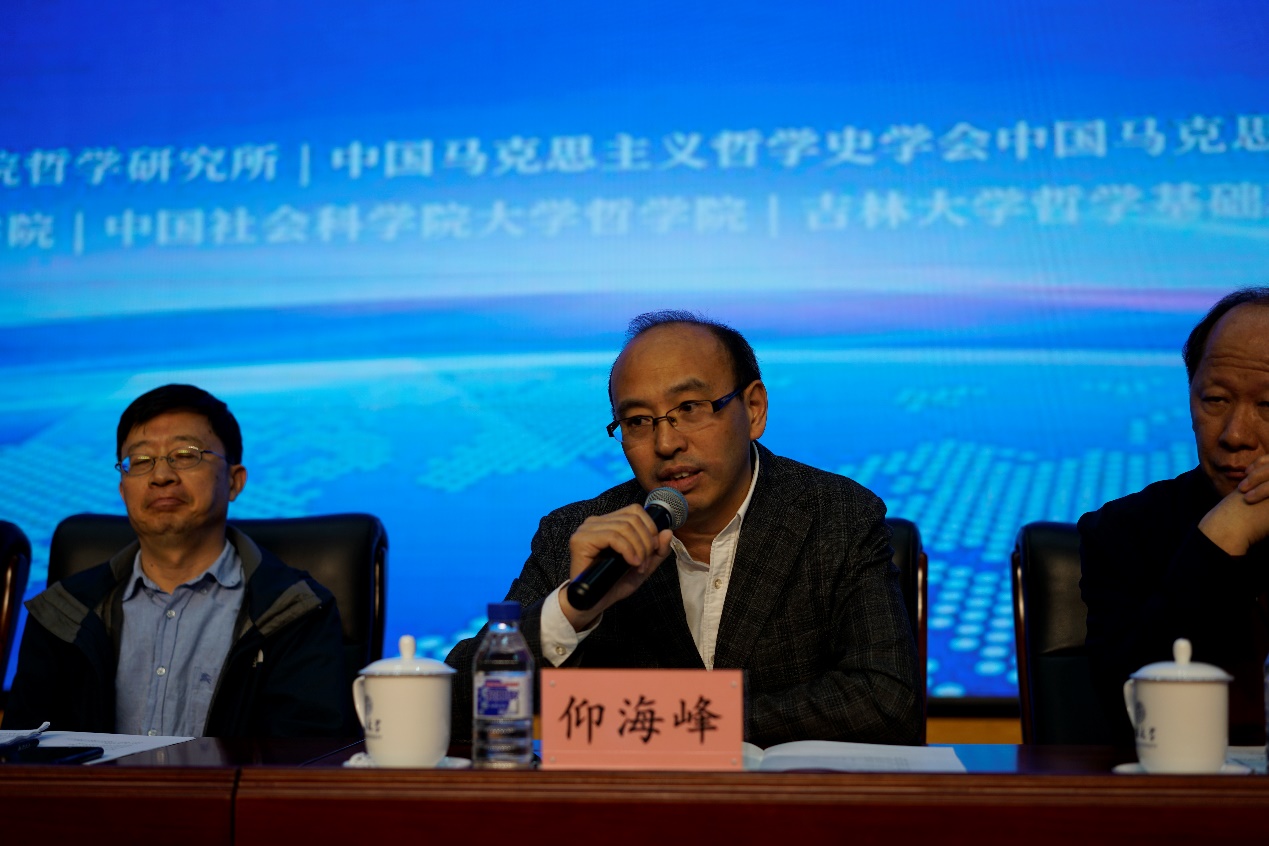 《哲学研究》编辑部主任周丹主持第一场大会发言,吉林大学资深教授孙正聿、南开大学教授王南湜、中央党校一级教授韩庆祥、武汉大学教授何萍、东北师范大学教授胡海波分别做了大会发言。