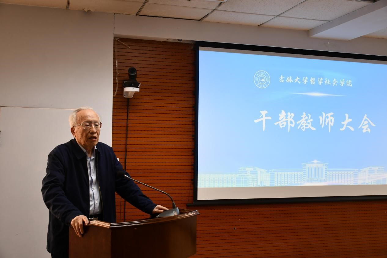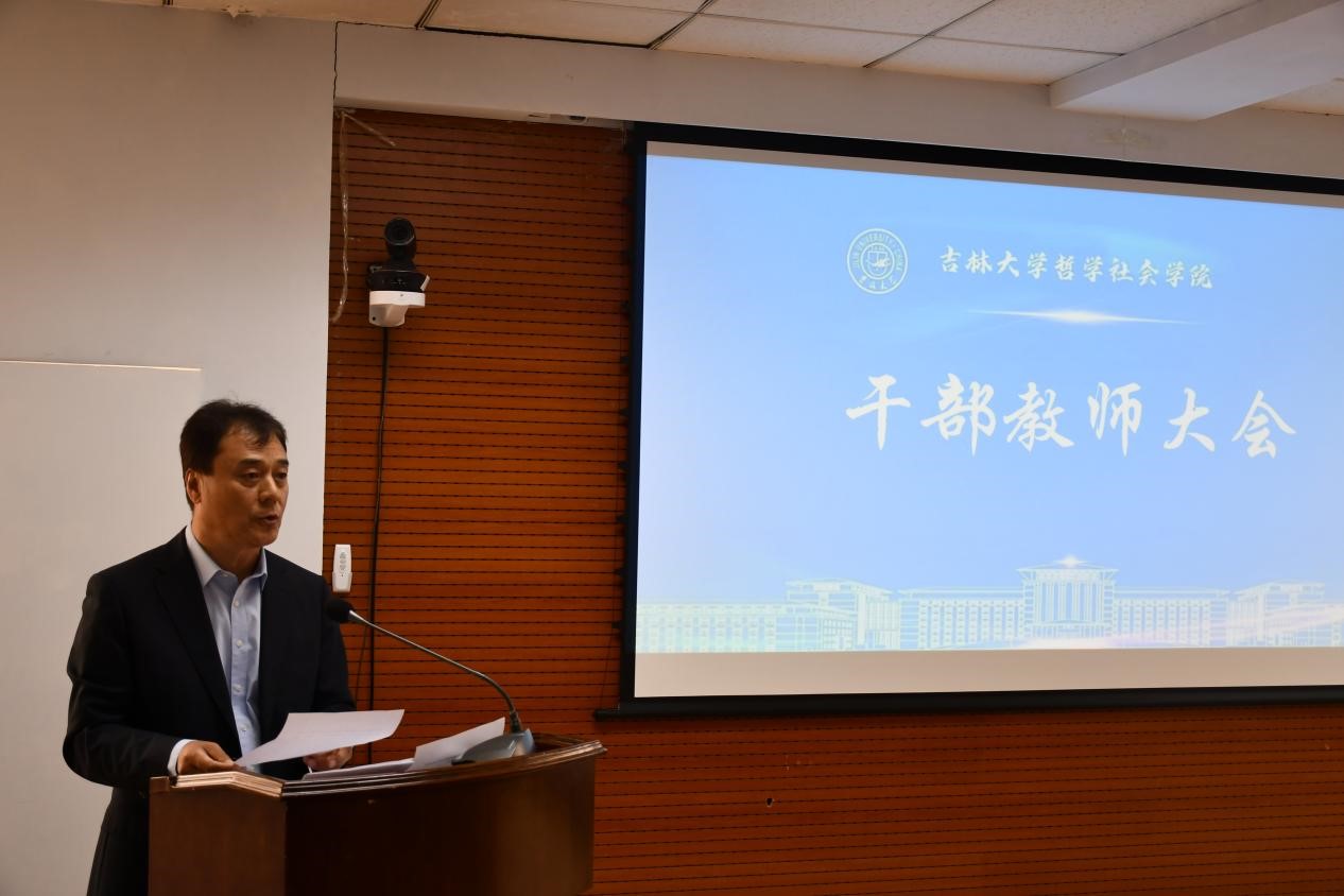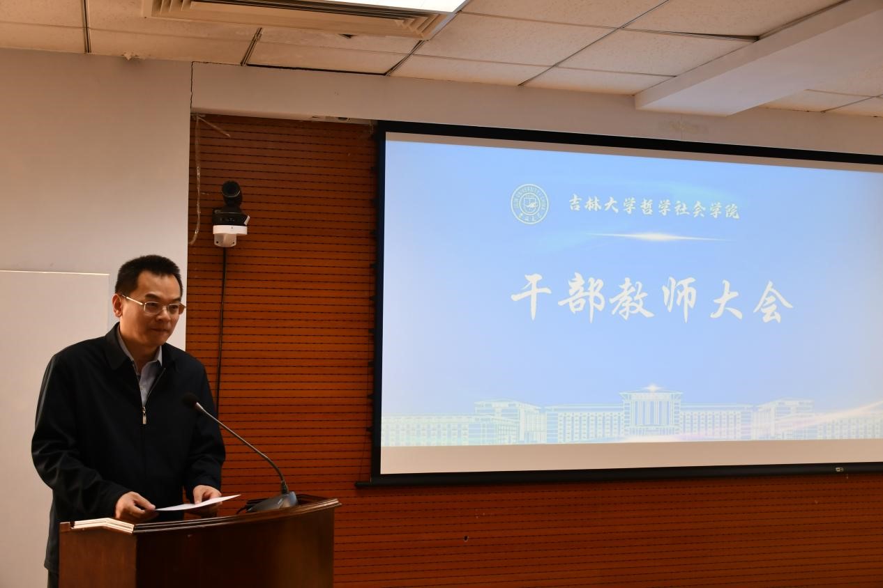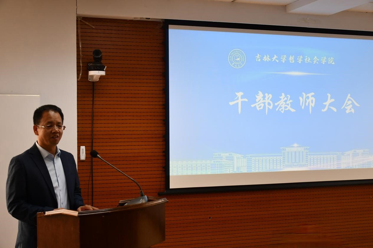 6月9日下午,哲学社会学院召开干部教师大会。哲学社会科学资深教授孙正聿,学校党委副书记、副校长王利锋,党委组织部部长姚毓春,哲学社会学院领导班子全体成员,各系、各行政科室主要负责人,教职工代表参加了会议。会议由院长白刚主持。