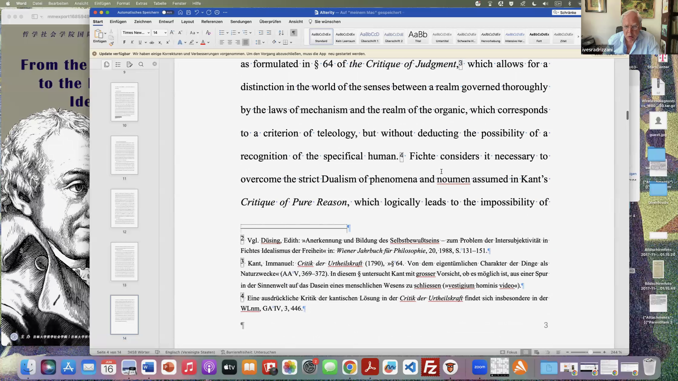 2023年6月16日16时,吉林大学哲学社会学院“国际合作平台学术讲座”第34讲“从笛卡尔的‘我思’到费希特的‘辩证’:费希特论同一性与他异性(From the Cartesian Cogito to the Fichtean Dialego: Identity and alterity in Fichte)”在线上举行。本次讲座的主讲人为慕尼黑大学哲学、科学哲学与宗教学系教授、巴伐利亚科学院研究员伊夫·拉德里扎尼(Prof. Dr. Ives Radrizzani),与谈人为慕尼黑大学哲学、科学哲学与宗教学系博士候选人弗兰克·米歇尔·尤哈斯(Prom. Frank Michael Juhasz )。本次讲座由我院外事负责人、哲学系讲师盛传捷主持,共计五十余名师生参加了本次讲座。