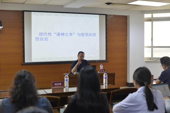 2023年7月10日上午9:00,国务院哲学学科评议组成员、教育部哲学教指委副主任委员、国家级人才、哲学社会科学领军人才”、中宣部文化名家暨“四个一批”人才、第九届吉林省哲学学会理事长贺来教授,为参加本届夏令营的全国各高校优秀学子们做了以“现代性‘诸神之争’与哲学的思想自觉”为题的学术讲座。本次讲座由吉林大学哲学系教工党支部李聪书记主持。