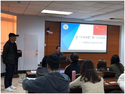 为迎接“建党100周年纪念”,近日,吉林大学哲学社会学院哲学系硕士学生党支部邀请哲学系系主任白刚教授,做了题为《从“三大法宝”到“三大经验”——中国共产党的百年历程》的党课。党课由哲学系硕士学生党支部书记赵雄峰同志主持,哲学系硕士党支部全体党员(含预备党员)出席了会议,同时邀请吉林大学哲学社会学院博士第一党支部、吉林大学哲学社会学院博士第二党支部的全体党员(含预备党员)列席。