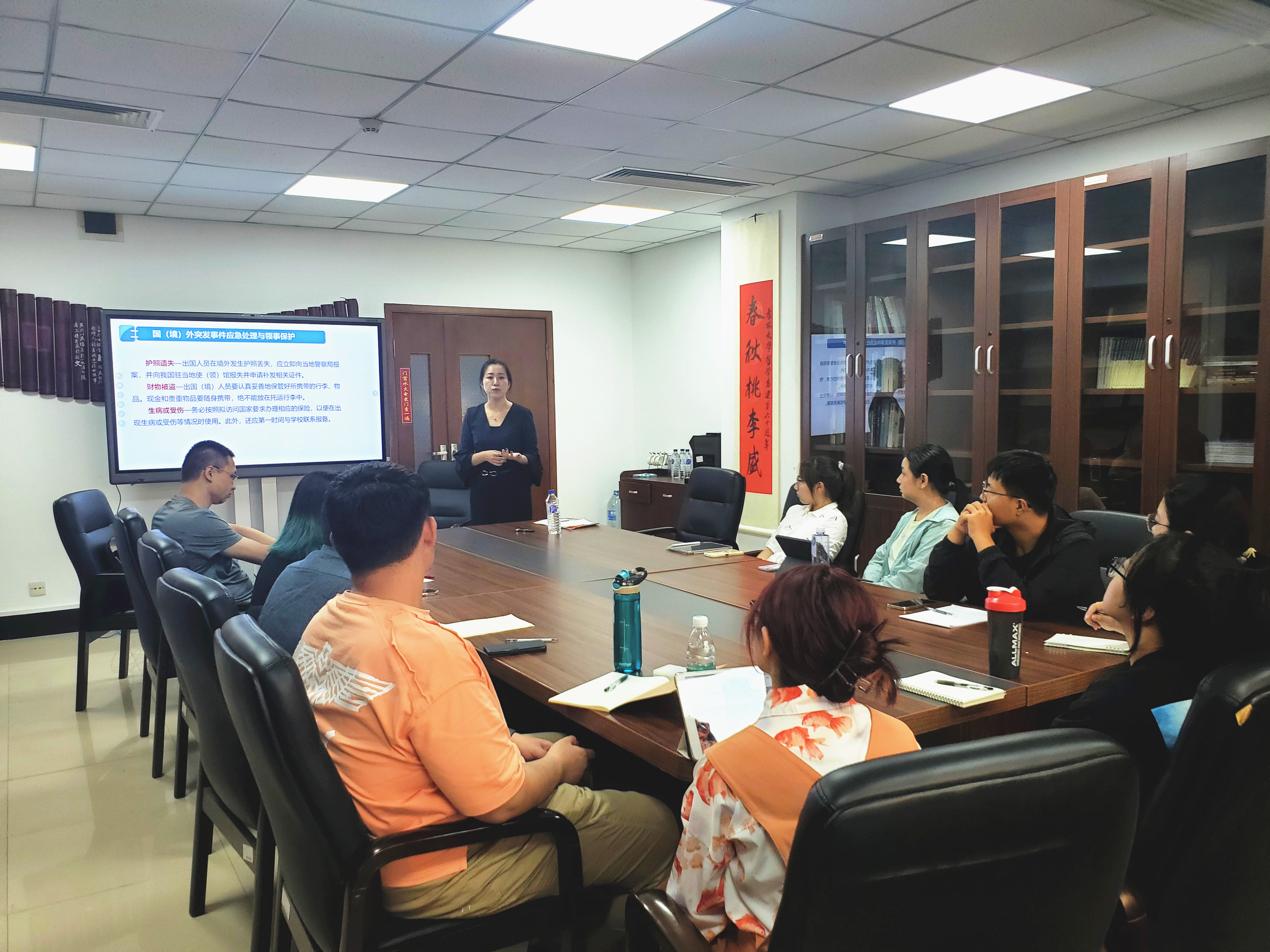 刘爽科长从国家安全与保密纪律、外事纪律要求、出访团组管理、国(境)外突发事件应急处理与领事保护等方面进行了细致地讲解,她还向团组成员详细介绍了目的国家、目的院校的基本情况和西方礼仪,并提醒团组成员做好行前准备。