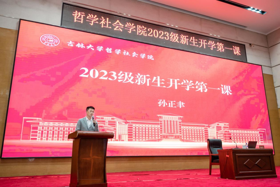 哲学社会学院党委副书记兼副院长刘培强主持活动。吉林大学教务处处长王庆丰、哲学社会学院院长白刚、党委书记张晓萌、哲学社会学院领导班子全体成员、2023级全体新同学以及马克思主义学院等兄弟院系部分师生参加活动。
