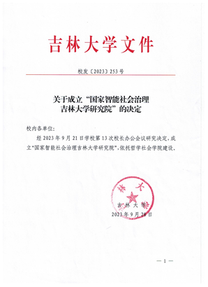 为深入贯彻落实党中央关于开展人工智能社会实验的工作部署,在中央网信办等八部委建议指导和长春市政府与吉林大学校地合作发展战略推动下, 2023年9月21日,经吉林大学校长办公会研究决定,成立“国家智能社会治理吉林大学研究院”,依托哲学社会学院建设。国家智能社会治理吉林大学研究院的成立是学校主动对接国家重大战略需求,推动党中央决策部署落地落实的重要举措,对于学校和学院在相关研究领域的学科发展、科学研究和人才队伍建设都具有重要意义。