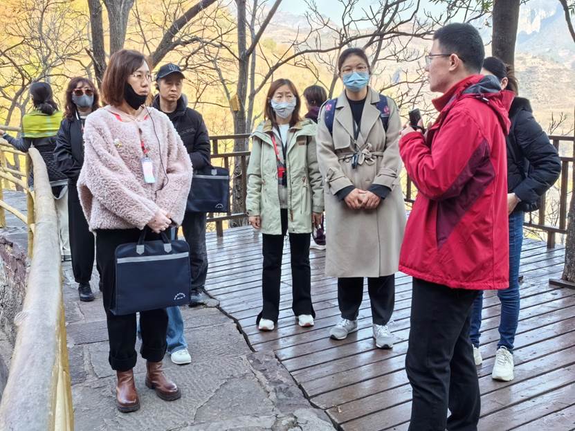 11月8日上午,学员们来到红旗渠的重点工程——青年洞进行参观学习。铁锤叮当,钢钎铿锵,打破了太行山亿万年的寂寞;炮声隆隆,无坚不摧,撕裂了干渴的旧山川。四公里的徒步教学路线两侧,万仞壁立、千峰如削,在工作人员的讲解中,学员们学习“号角嘹亮”、“小推车”、“踏遍青山”等雕塑背后的劳动故事,重温“铁姑娘打钎”、“凌空除险”等修渠场景,进一步感受到红旗渠工程的伟大和艰辛。看着穿山而过的红旗渠水,学员们切身感受到“引漳入林”工程的艰辛与不易,为当地人民不屈不挠的革命斗志和战天斗地的英雄气概所震撼。
