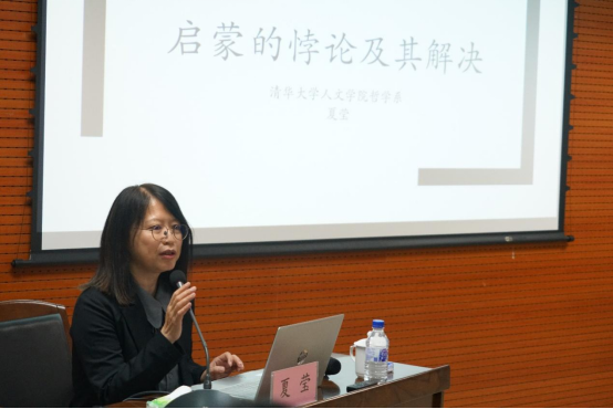 11月3日晚上19:00—20:30,“清华大学-吉林大学哲学拔尖2.0两校论坛暨第三届清华大学水木哲学学堂论坛”第五场专题讲座在东荣大厦A904会议室举办。主讲人为清华大学人文学院哲学系长聘教授夏莹,讲座主题为“启蒙的悖论及其解决”。本场讲座由吉林大学哲学社会学院院长白刚主持。