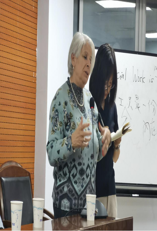 2023年11月28日,我院举办哲学社会学院名家系列讲座,题为“我的社会工作寻梦路”,主讲人为香港理工大学原副校长、香港理工大学应用社会科学系名誉教授、原国际社会工作教育联盟主席、原全球大学社会责任网络创会主席阮曾媛琪,与谈人为国际社会工作教育联盟主席Annamaria Campanini、香港理工大学卫生及社会科学学院应用社会科学系教授崔永康。我院社会学系张仕平、芦恒、李晓玲、孟祥丹、张竞月、祁静等专业教师及本科、研究生参加此次活动。