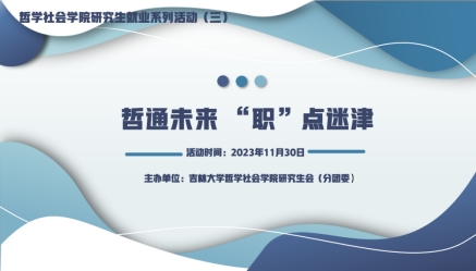 为助力促进学院硕士研究生高质量就业,提高就业适应能力,哲学社会学院于2023年11月30日19:30举办研究生就业指导系列第三期活动——哲通未来 “职”点迷津 事业单位入职经验分享会。研究生辅导员于洋老师,学院研究生会(分团委)成员及各年级研究生参加会议。