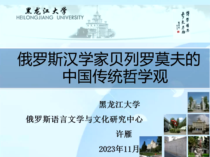 “论文宣读及专家点评”的下半场由吉林大学哲学社会学院的博士生焦玉主持。本场首先由来自黑龙江大学俄罗斯语言文学与文化研究中心的博士生许雁汇报论文《论俄罗斯汉学家贝列罗莫夫的中国传统哲学观》。