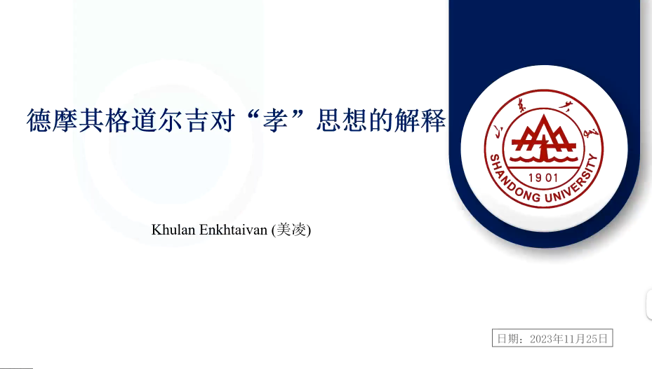 接着由山东大学哲学与社会发展学院的美凌汇报论文《德摩其格道尔吉对“孝”思想的解释》。