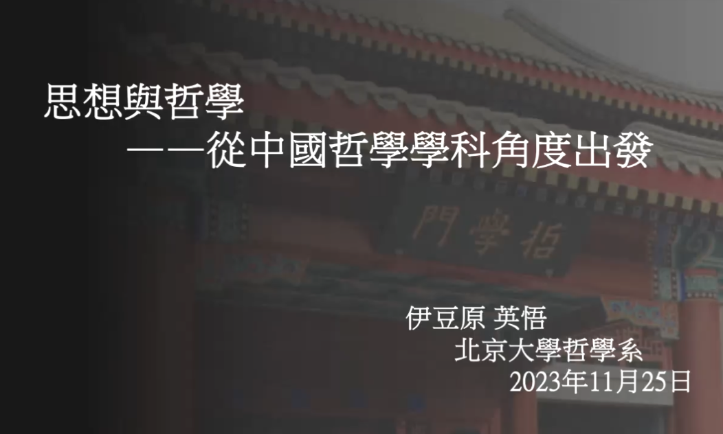 “论文宣读及专家点评”的上半场由吉林大学哲学社会学院的博士生卢菡清主持。本场首先由来自北京大学哲学系的伊豆原英悟汇报论文《思想与哲学——从中国哲学学科史角度出发》。