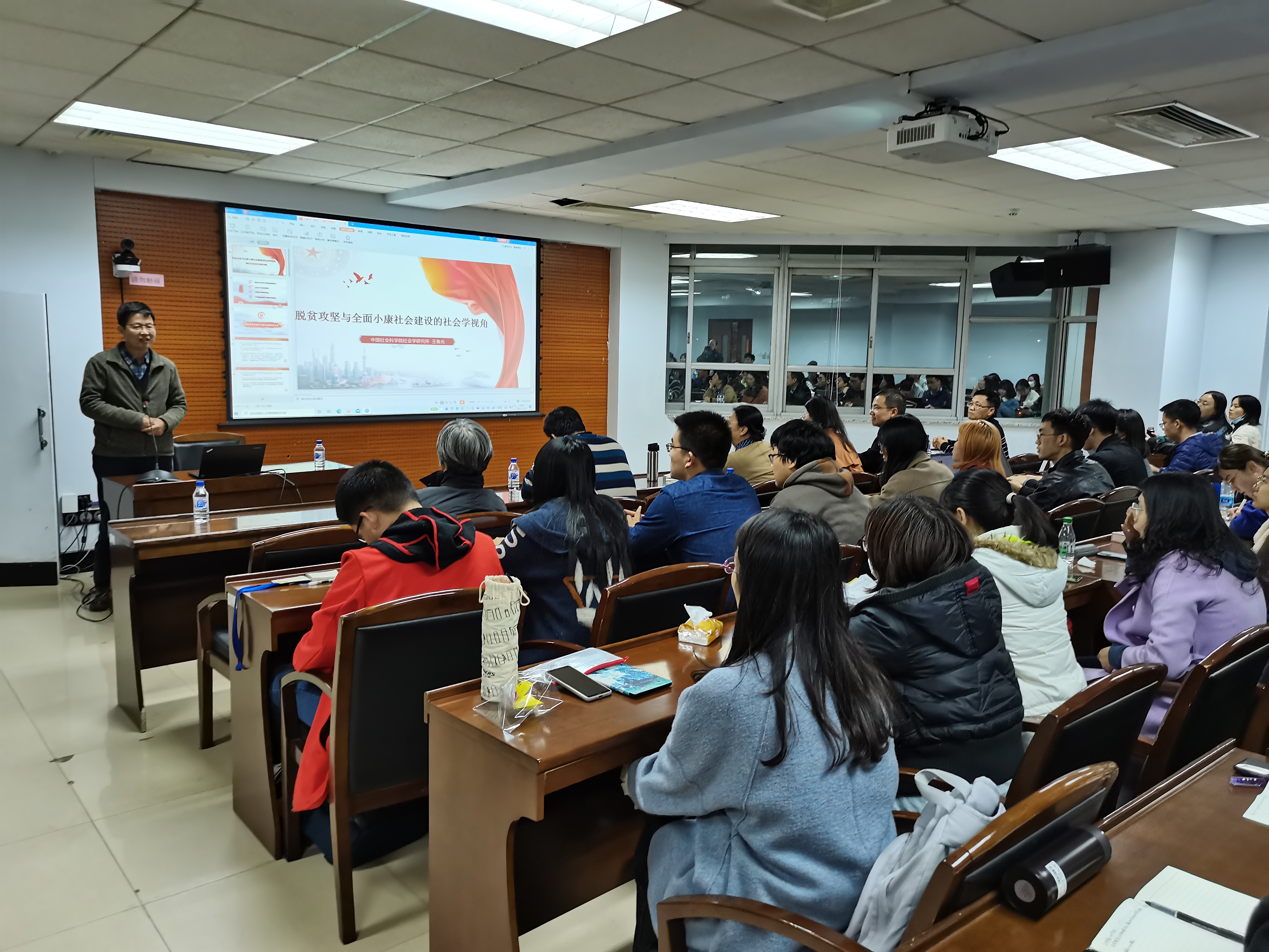 2020年10月19日晚19:00,哲学社会学院第101场名家讲座顺利进行。中国社会科学院社会学研究所副所长、中国社会科学院社会政策研究中心主任、中国社会农村专业委员会理事长王春光研究员做了题为“攻坚脱贫与全面建成小康社会的社会学视角”的学术讲座。