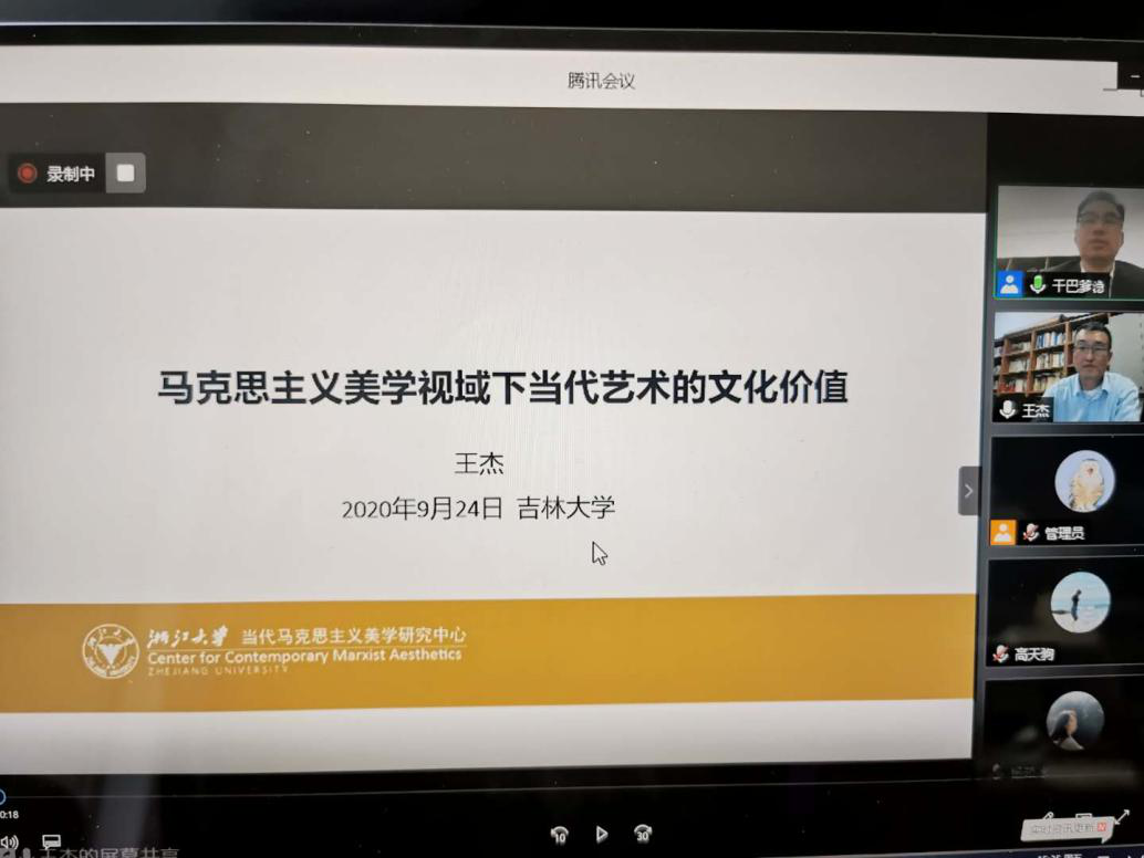 2020年9月24日晚18:30,中华美学学会副会长、《马克思主义美学研究》(CSSCI)主编、浙江大学求是特聘教授王杰应邀为我院师生做了题为《马克思主义美学视域下当代艺术的文化价值》的讲座。。