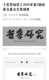 日前,根据《哲学研究》期刊发布的2024年第2期目录及重点文章摘要显示,我院孙正聿教授指导的博士研究生王榕的论文《历史唯物主义视域中的物自体与“历史先验”:康德与索恩-雷特尔的复合性关联》成功发表!