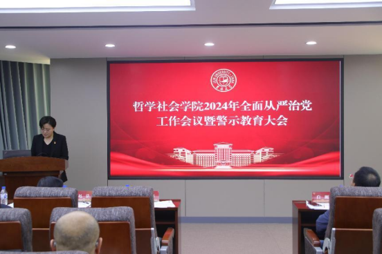 5月7日,按照学校党委工作部署,结合学院党纪学习教育工作安排,哲学社会学院在东荣大厦904会议室召开学院2024年全面从严治党工作会议暨警示教育会议,全面贯彻二十届中央纪委三次全会精神,深入学习贯彻习近平总书记关于党的自我革命重要思想,落实立德树人根本任务。学院全体教职工参加会议。学院党委书记张晓萌主持会议。