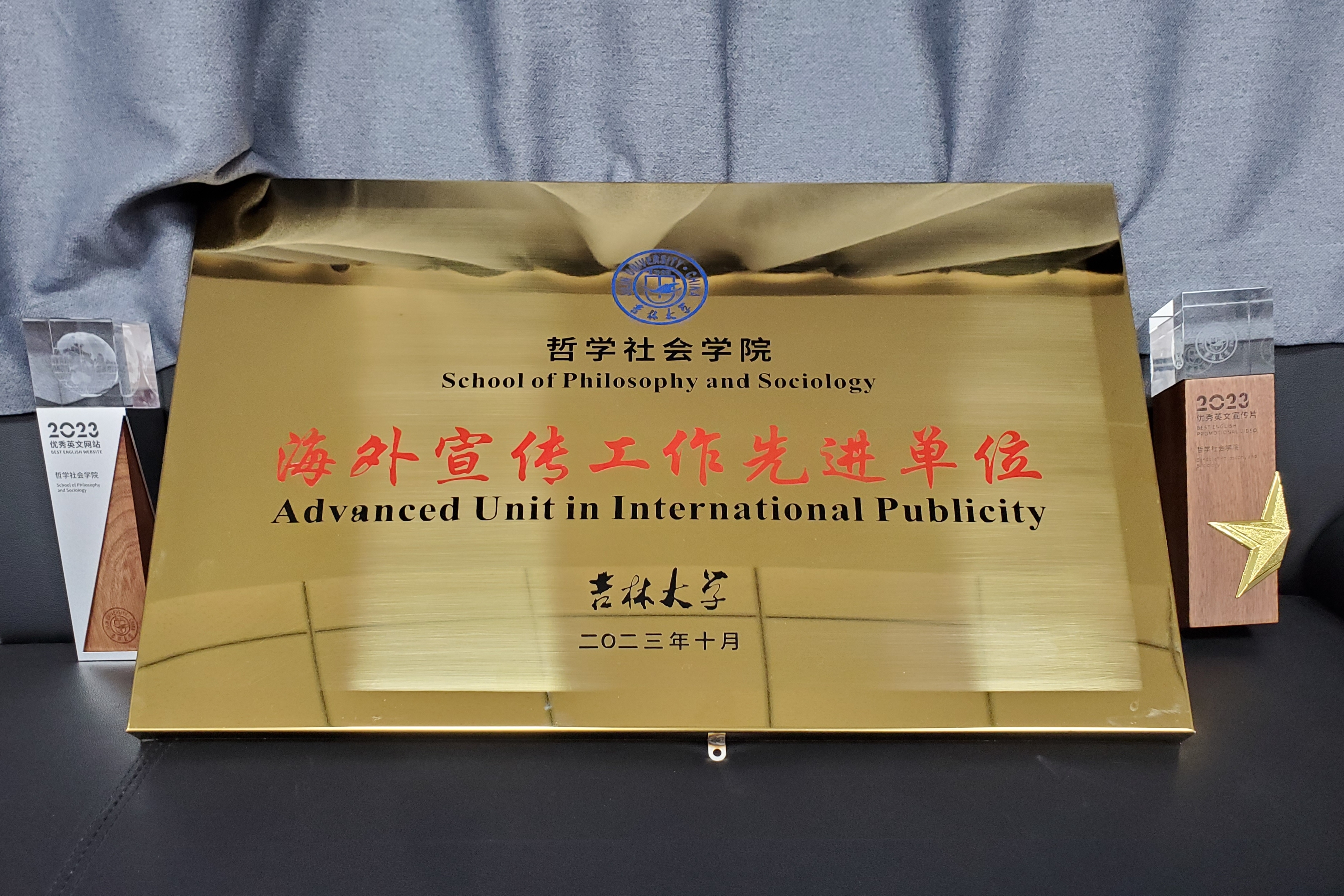在2023年学校党委宣传部、国际合作与交流处组织的“吉林大学教学科研单位英文网站、英文宣传片评比工作”中,经专家组评审,我院英文网站被评为“吉林大学优秀英文网站”,我院提交的英文宣传片被评为“吉林大学优秀英文宣传片”,我院被评为“吉林大学海外宣传工作先进单位”。