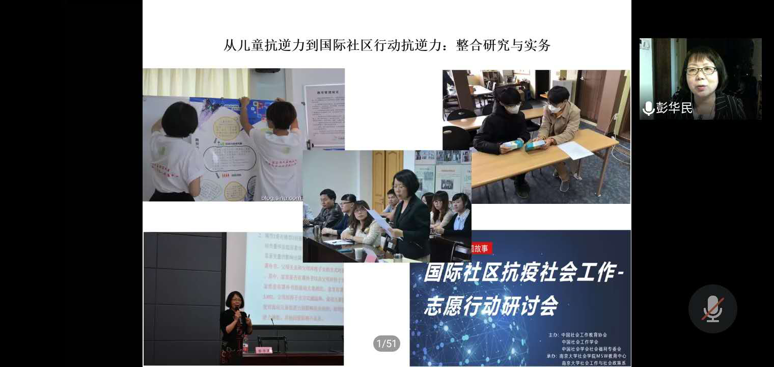 针对国际社区抗疫行动和彭教授团队的介入过程,她从“行动理念、原则、知识和实务”、“专业团队和专业督导”、“政策行动和政策倡导”、“多元化的人力资源与组织”、“链接IASSW资源”等角度进行了详细的阐述,解释了团队在抗击疫情构建抗逆性社区过程中的理论框架和工作内容。基于上述讲述,彭教授最后提出了几个反思的问题:“在抗疫中打造社会工作专业的创新特色时,你能做什么?”、“你带领团队能做什么?”、“你能为学科建设发展做什么?”、“你能为社工专业和学科走向世界做什么?” ,引发了与会师生的深入思考。
