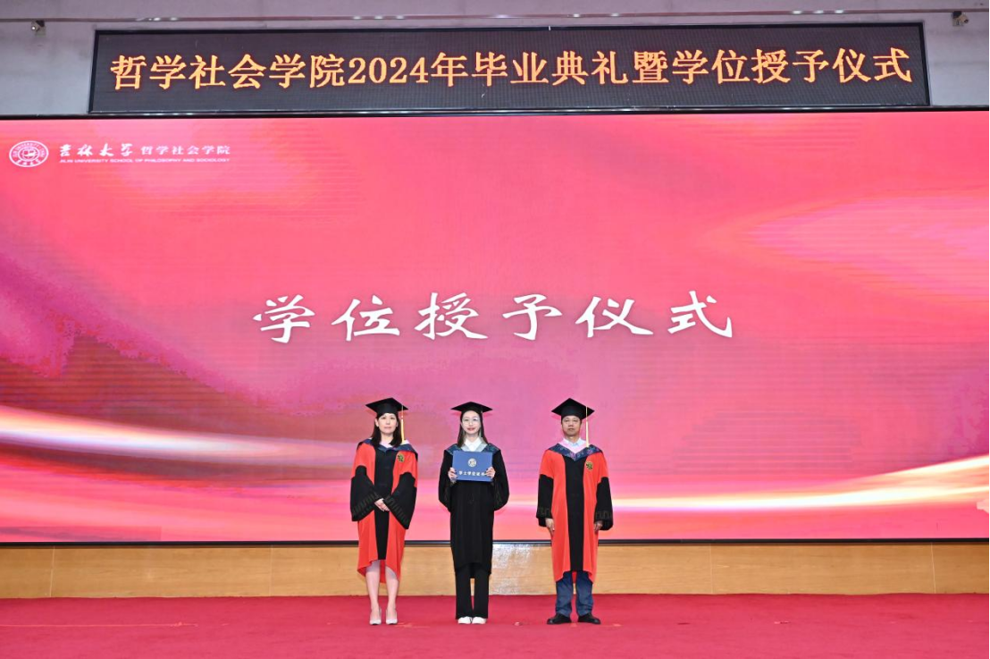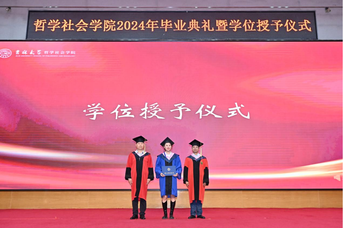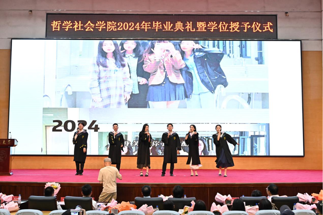 苍梧发轫,毕至昆仑;爱智求真,乘风远航。“为人为学,其道一也”,这是哲社用时光与温柔上的一堂大课,也将是每一位哲社人一生的承诺与践行!未来,也许山高路远,而青春的我们——人比山高,脚比路长。在全体师生热烈的掌声中,哲学社会学院2024年毕业典礼暨学位授予仪式圆满落下帷幕!