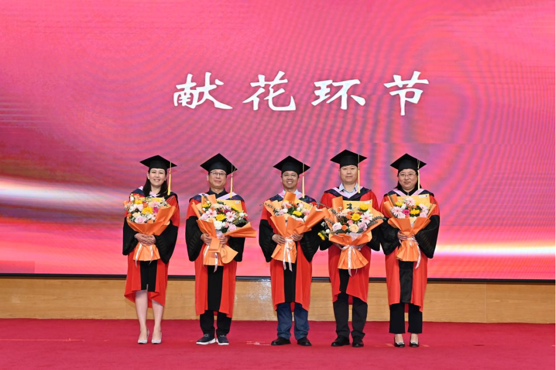 典礼第六项,学院学生代表们为教师代表们献花。“哲思群理,修齐治平”,研究实践、求学问道,老师们的精神风骨潜移默化地影响着同学们的成长,谆谆教诲指引着学子的人生道路。红烛春晖、桃李芬芳,怀揣着老师们的殷切期望与深情嘱托,同学们必将把哲社人的青春论文写在祖国大地上。