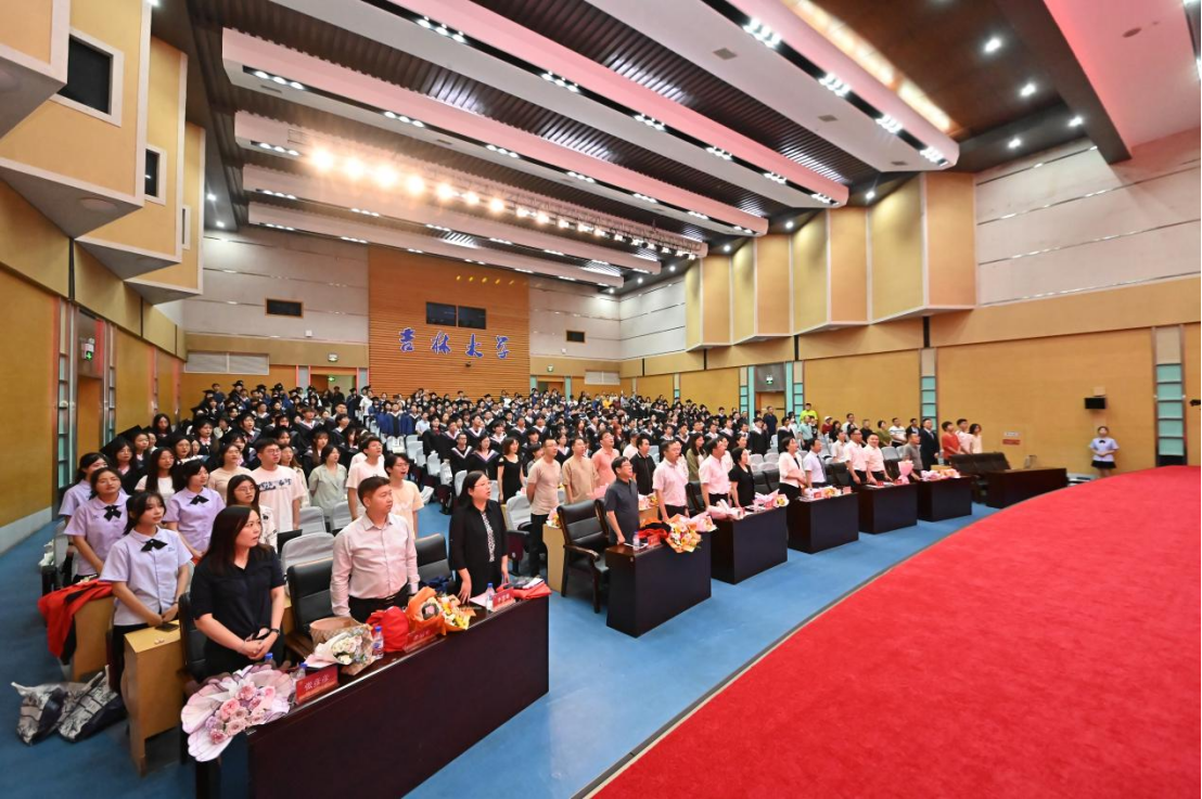 仪式临近尾声,全体师生起立奏唱校歌。“跨越黄河,跨越长江,跨越太平洋,跨越新世纪去迎接轰响的红太阳!”在高昂激烈的校歌声中,学院全体师生壮怀激烈,誓以切实行动践行校歌中的豪情壮志,以青春之豪情为中华民族复兴伟大事业挺膺担当!