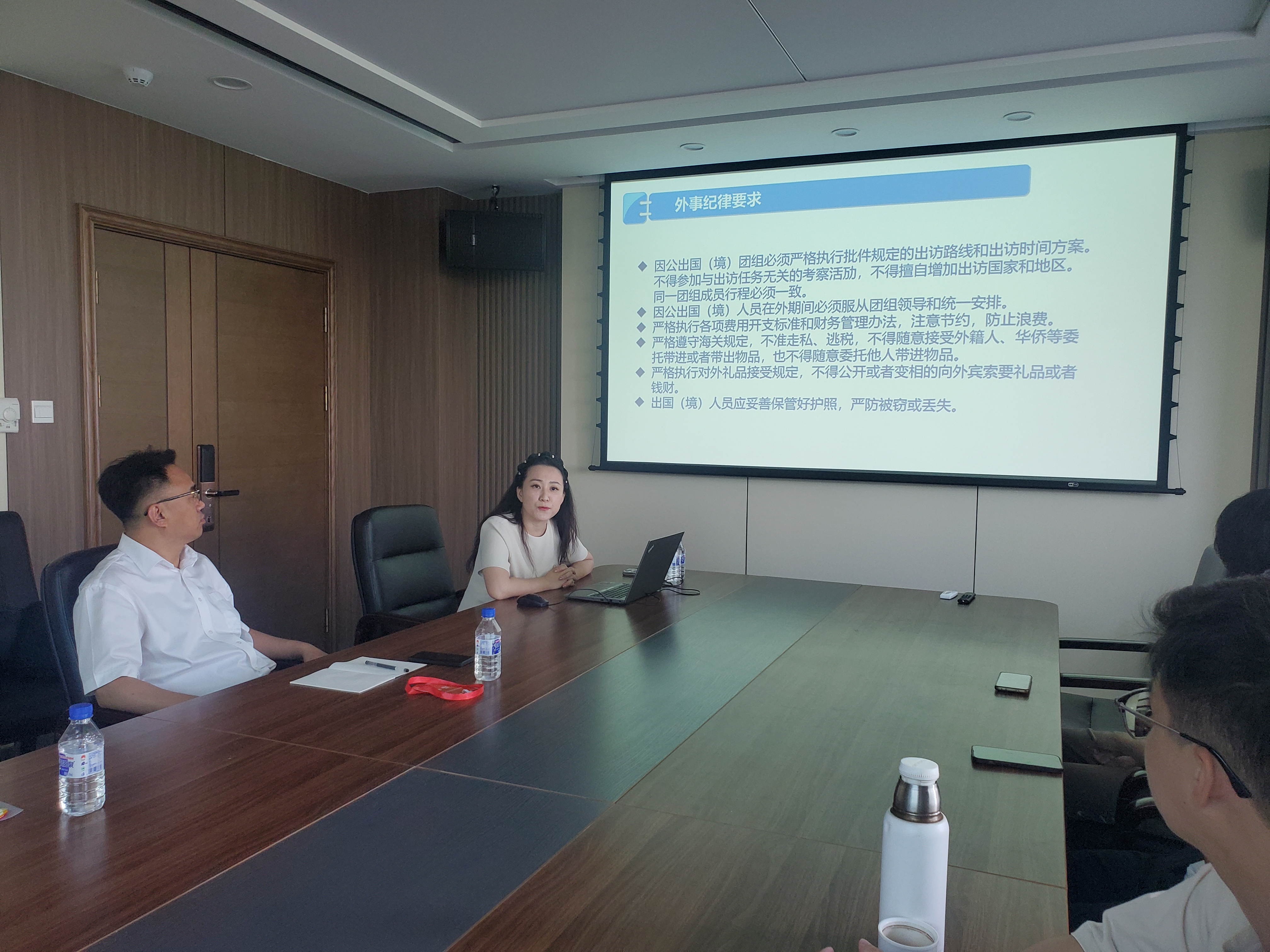 刘爽科长从国家安全与保密纪律、外事纪律要求、出访团组管理、国(境)外突发事件应急处理与领事保护等方面进行了细致地讲解,她还向团组成员详细介绍了目的国家、目的院校的基本情况和西方礼仪,并提醒团组成员做好行前准备。