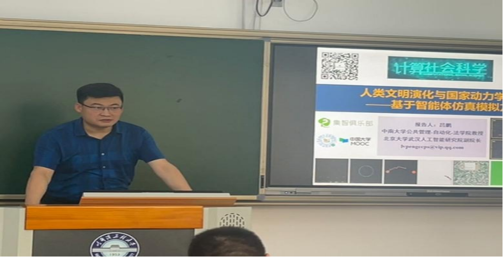 中南大学社会计算研究中心主任、公共管理学院/自动化学院/法学院吕鹏教授作了《人类文明演化与历史动力学ABM模拟》的报告。他通过智能体仿真模拟方法探究了人类群体行为宏观涌现规律与微观行为机理,揭示了人类文明演化和国家发展的动力机制,对于讲好中国故事,提升历史自信、文化自信具有重要意义。