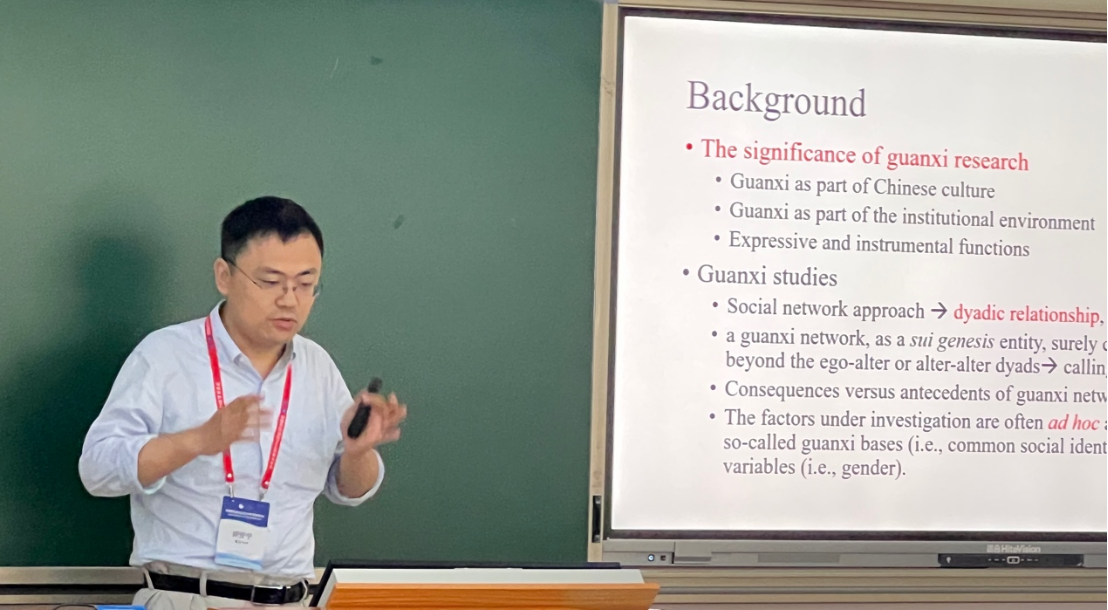 复旦大学研究生院副院长、社会发展与公共政策学院胡安宁教授作了题为《绘制当代中国人的关系界石:关系网络结构及其与传统文化认同关联》的报告。他的研究通过测量发现了异质性的网络关系结构;人际关系的动态变化规律;兄弟关系之间存在着复杂的角色关系;标准化的文化文本与人们心中的生活文化之间的距离。