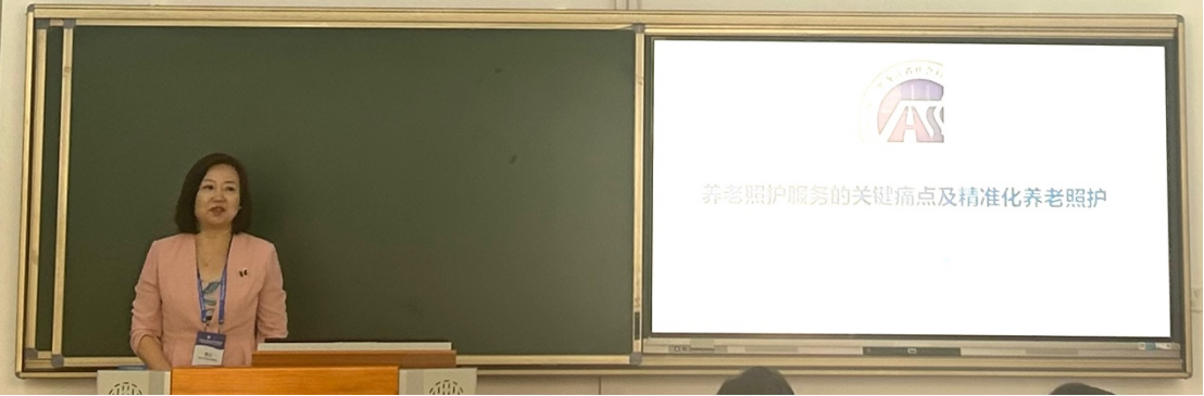 黑龙江省社会科学院副院长、社会学研究所黄红研究员作了题为《养老照护服务的关键痛点及精准化养老照护》的报告。她指出当下养老服务存在着资源利用率不高、照护人才短缺、老年长期照护服务模式发展不够、对老年人失智失能的预防重视不足等关键痛点,并提出从“精准识别—精准整合—精准供给—精准支持—精准管理”等方面为老年群体提供供需匹配的照护产品和服务。