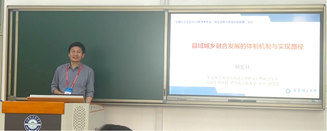 华东理工大学社会与公共管理学院副院长杨发祥教授作了题为《县域城乡融合发展的体制机制和实现路径》的报告。他认为目前县域城乡融合发展面临着城乡二元结构矛盾依然突出、农村“三化”问题治理难度大、城乡资源要素流动不合理等诸多突出问题,需要“生计—生产—生活”三生推进机制,具体的实现路径包括政策支持、基础设施建设、产业协同发展、生态环境保护和人才交互等路径。