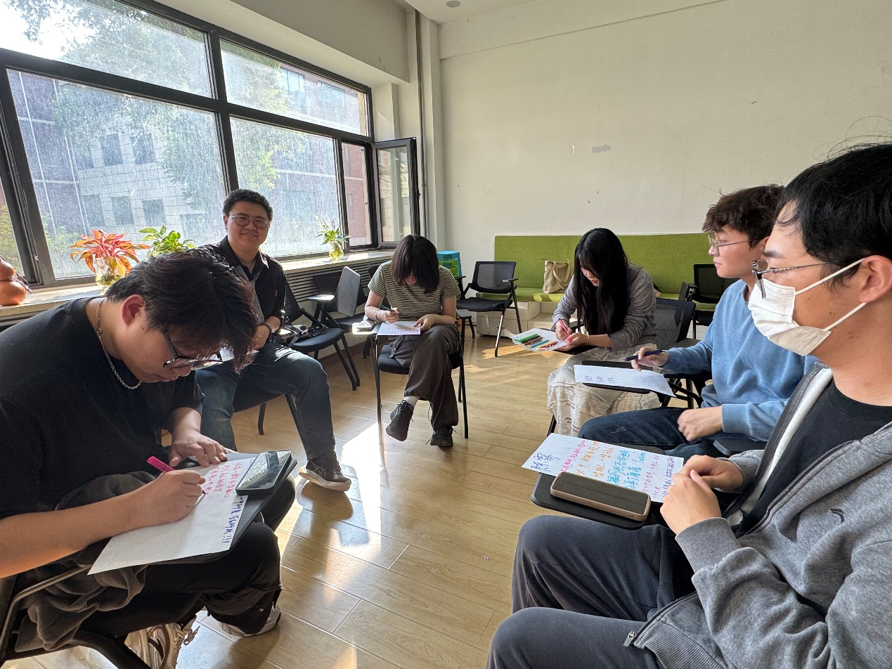 活动伊始,通过“一分钟鼓掌”游戏,现场气氛逐渐活跃起来,随后同学们通过轮流报数的方式进行分组,组内成员在对不同话题的交流中相互了解,增强了彼此的情感联系,缩短了人际间的心理间隔。
