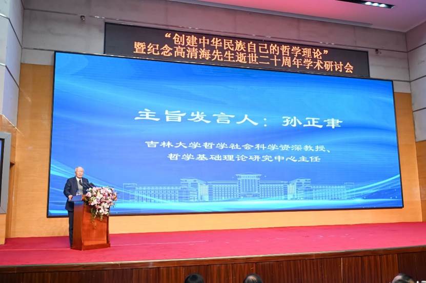 孙正聿教授回顾了高清海先生的亲人、朋友、弟子和仰慕先生的学者们在《山高水长——高清海纪念文集》中的追忆,对吉林大学的历任和现任领导、哲学社会学院历任和现任院长、学界的各位专家学者为继承和发扬先生的哲学思想所付出的努力表示感谢,并对吉林大学哲学学科、吉林大学基础理论研究中心、吉林大学高清海哲学思想研究中心在研究和传播高先生的哲学思想过程中取得的一系列成果进行了介绍。孙正聿教授最后真诚地期待与学界朋友们一道,继承和弘扬高清海先生的哲学思想和为人为学之道,以哲学方式面向现实,塑造新的生命意义,引领新的时代精神,创建新的人类文明,坚守哲学对真理、正义和更美好生活的追求。
