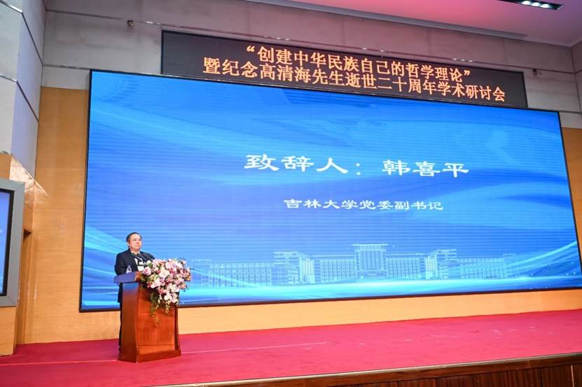 韩喜平副书记代表吉林大学、姜治莹书记和张希校长,感谢大家的莅临。韩书记指出,高先生曾任吉林大学副校长,作为吉林大学马克思主义哲学国家重点学科负责人、国务院首批博士生导师、国务院学位委员会第一、二届学科评议组成员,高清海先生是吉林大学乃至全国哲学界的一面旗帜,也是为人敬仰的“大先生”。他对哲学教科书体系的改革、实践观点思维方式的提出、类哲学的构建,都极大推进了我国哲学观念的变革。如果书写当代中国哲学史,高先生及其哲学思想,一定是无法忽略的一笔。