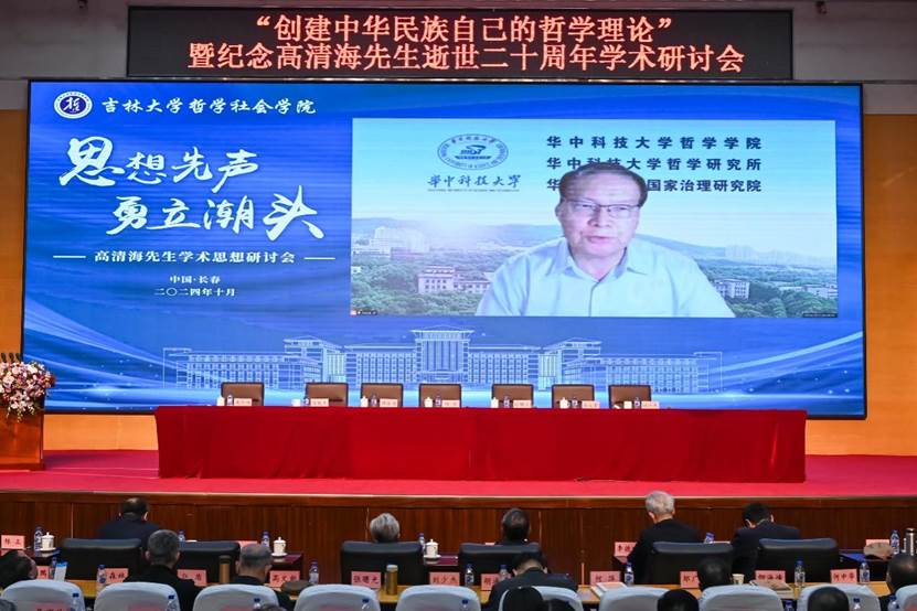华中科技大学哲学院教授、原党委副书记欧阳康在视频发言中指出,高清海先生是当代中国马克思主义哲学界最富于开拓意识和创新精神的哲学家之一,他努力找回失去的“哲学自我”,彰显哲学创新的生命本性,构建起了一个具有鲜明自主知识特色的哲学体系,也正是通过哲学创新,高先生的哲学学术生命展示出强大的活力和魅力。