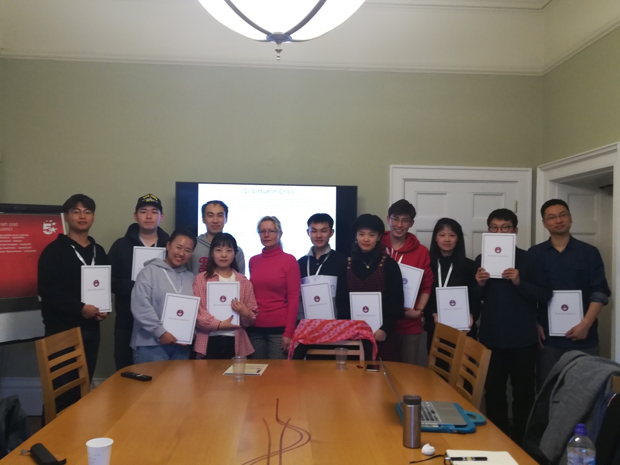 11月15日,交流团在牛津大学参加课程。Mackenzie Graham博士以“Arete, Phronesis, and Eudaimonia: A Survey of Arisotelian Virtue Ethics”为题,讲述了有关亚里士多德的美德伦理学。因为话题与同学们在国内的研究方向息息相关,课堂氛围十分活跃。而后,Roxana Baiasu博士以“Feminist Discussions of Moral Justification and Autonomy”为题,与同学们探讨了有关女性主义的话题。女性主义在当今社会已经越来越受到重视,在课堂上同学们也就该问题展开了热烈的讨论。最后,Anna Whiston博士以“To What Extent Is the Concept of Virtue Still Important in Today’s World?”为题,与同学们讨论了美德伦理学在当代的重要作用,并提出了一种道德强化剂的设想。指出道德强化剂能够增强人的共情能力,使人有更加强烈的欲望去做有美德的事。同学们对此也表现出了浓厚的兴趣,与Anna Whiston博士进行了积极探讨。课程结束之后,Anna Whiston博士为同学们颁发了学习证书。至此,哲学社会学院“2019年吉林大学学生国际竞争力卓越计划——‘牛津大学-吉林大学哲学短期课程项目’”顺利结束。