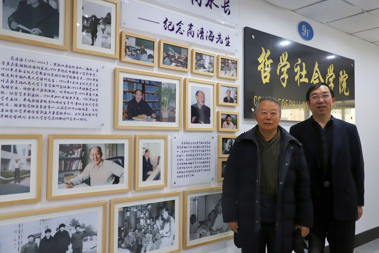 今年是著名哲学家、我院学术先贤高清海先生逝世二十周年,为深切纪念高清海先生,发扬学院“苦读笨想”的思想传统,加强对我院青年师生的思想引领和榜样激励,学院以“高清海先生生平事迹展”的形式设计打造了学院文化墙。来到学院文化墙前,王成果老师与师生们热情交流自己对高清海先生的点滴记忆,温情风趣的话语使得在场师生们倍感亲切。