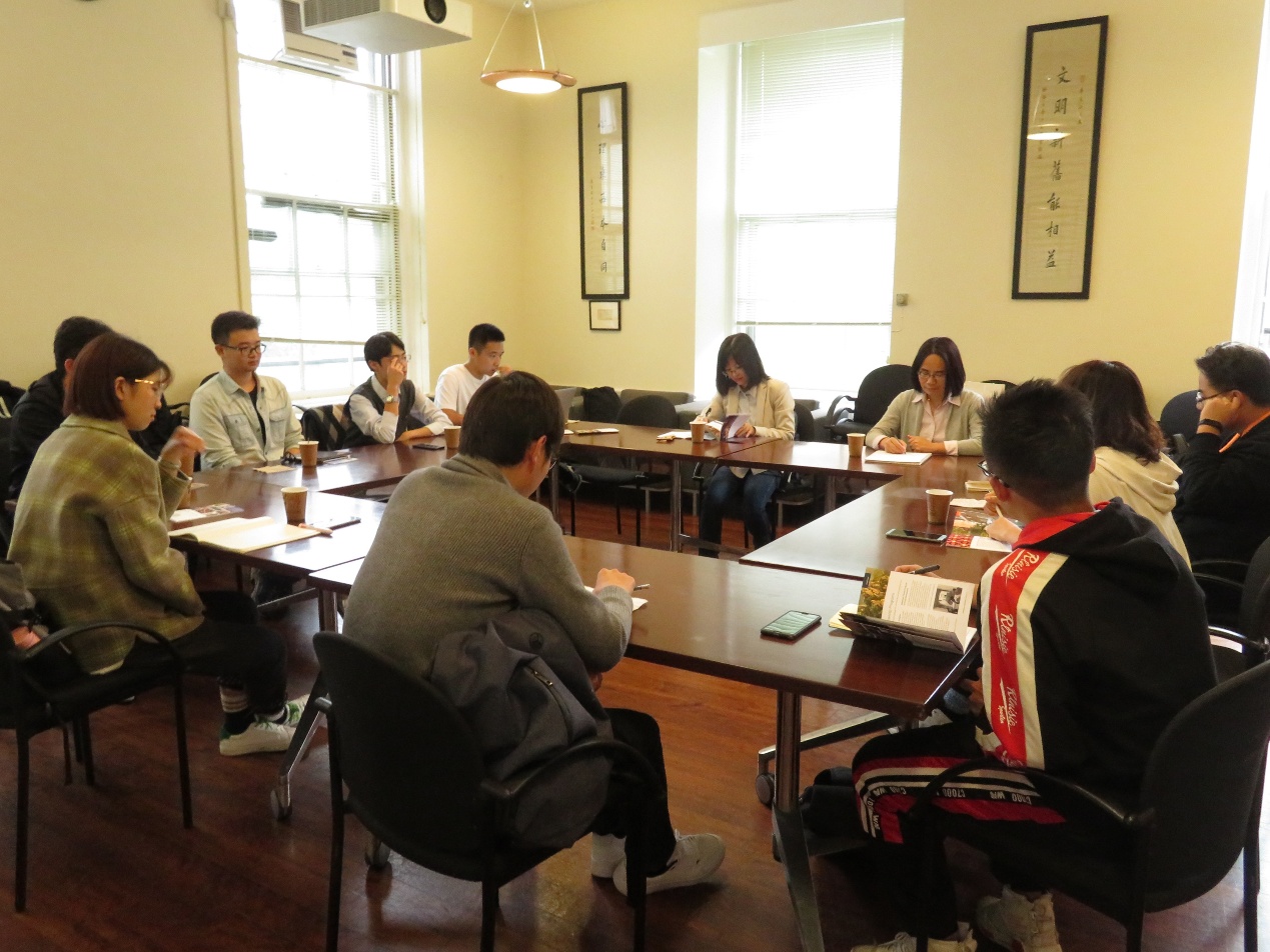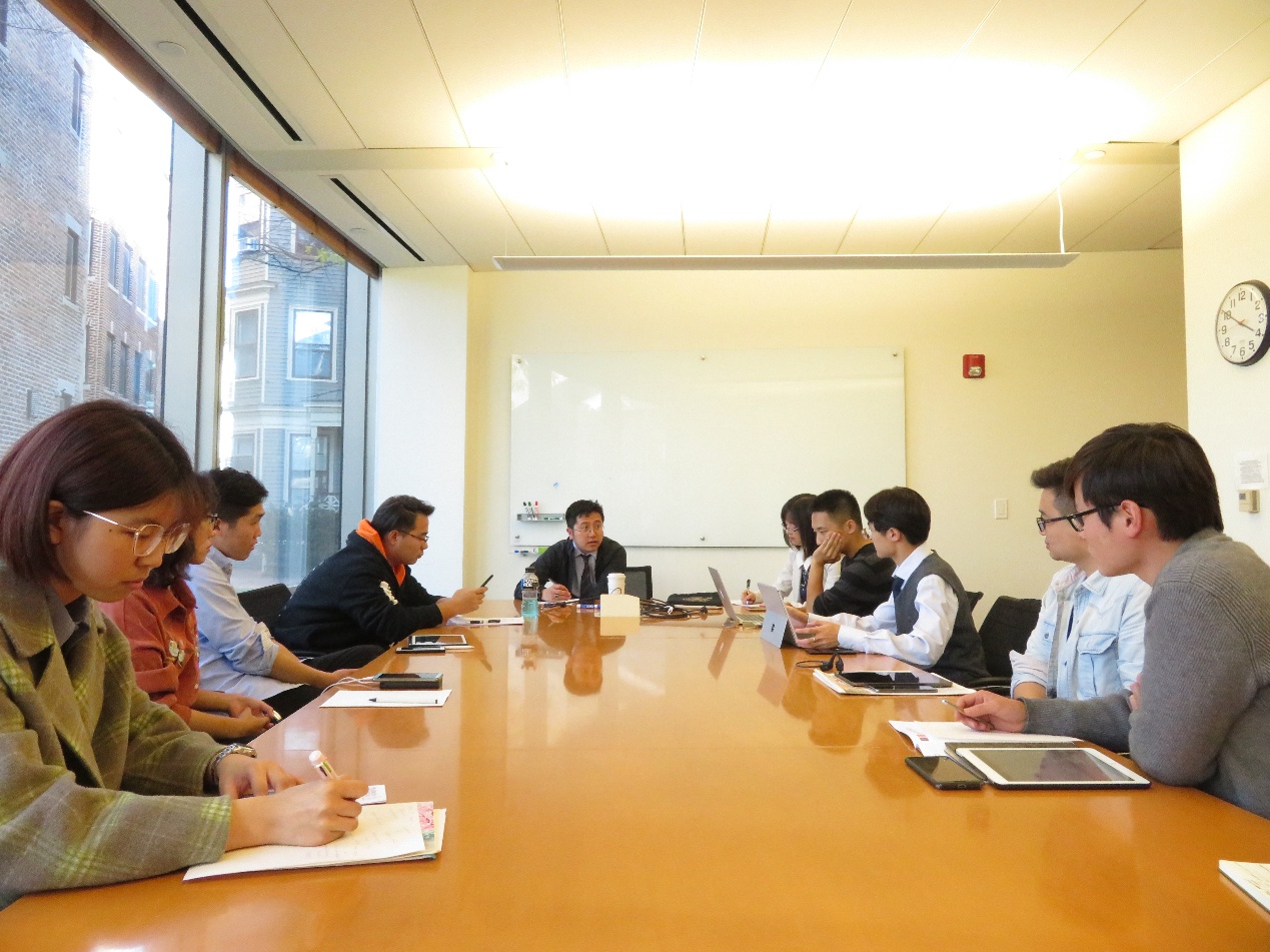 10月21日上午,在哈佛大学费正清研究中心的帮助下,交流团一行人办理了访问学者图书阅览证,并参访了哈佛大学的怀德纳图书馆(Widener Library)及拉蒙特图书馆(Lamont Library),深入研究了哈佛大学的馆藏系统,试用了哈佛大学图书馆的HOLLIS电子档案系统以及哈佛大学图书馆的微缩胶卷馆藏档案,并结合自身研究兴趣,分别查阅了“中国基层社会治理”的相关文献。参访后交流发现,哈佛大学的图书馆系统对于档案管理、检索系统、同一文献不同印刷出版版本的保存完善程度以及馆藏领域的全面详实程度等方面值得学习,一行人也深刻体悟到了世界一流大学的图书馆建设之全面。21日下午,交流团如约前往哈佛大学治理与国际研究中心(CGIS)纳菲尔大厦(Knafel Building)的K109研讨室,同哈佛大学费正清中国研究中心(Fairbank Center for Chinese Studies)的学者萧建业教授(Porf. Victor Seow)展开了题为《中国基层社会治理(1949-2019)》(Local Social Governance in China (1949-2019))的学术工作坊研讨活动。学生们分别从“中国基层社会治理中地方规则运行的意义”、“基层政权建设与村治逻辑变迁”、“乡村治理的规则认同与规则实践”、“中国的都市移民:竞争与整合”、“空间社会学视角下中国社会的基层治理”、“智慧城市治理模式的比较研究”、“社会组织参与城市基层社会治理”、“网格化管理与社会信任”等角度陈述、展示了自己有关中国基层社会研究的观点,萧教授从历史与国际角度给出了中肯的意见与建议。双方也就费正清研究中心的研究热点、哈佛大学的治学环境以及中国东北振兴等议题展开了热烈的讨论,会后,学生们表示受益匪浅。