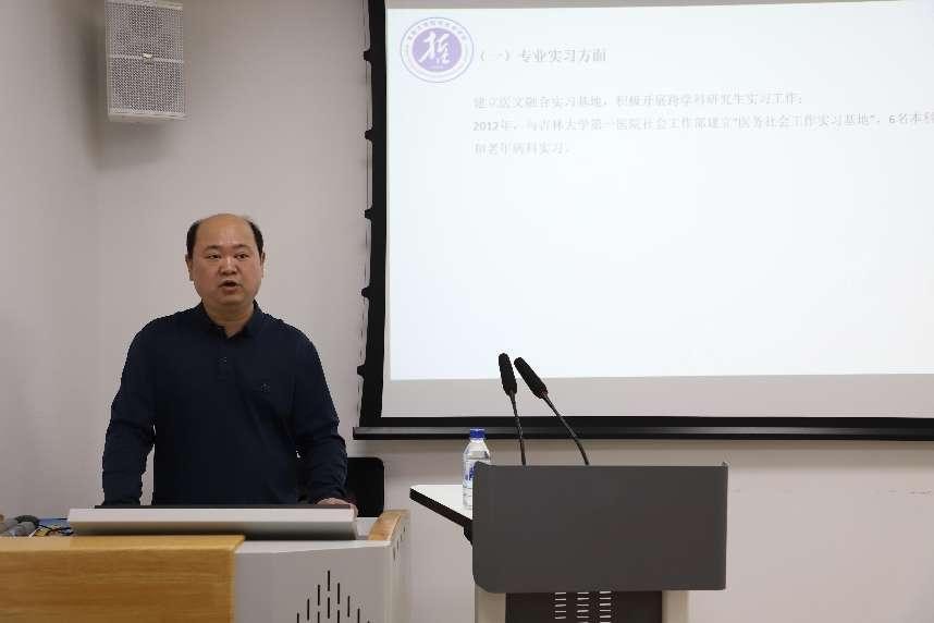 随后,芦恒副院长介绍了我院在医文融合交叉领域的具体实践。自2012年起,我院在吉林大学第一医院医务社会工作部建立了“医务社会工作实习基地”,开启了医文融合的序幕。我院的医文融合建设主要涵盖五个方面:教学实习、人员组织、学生活动、教学课程以及党建与社会实践。例如,在教学实习方面,我院已在吉林大学第一医院和第二医院建立了实习基地,为社会学和社会工作专业的研究生提供实践机会;在人员组织方面,教师积极参与医学相关组织,如吉林大学第一医院伦理委员会、第三医院伦理委员会,吉林省生命关怀协会、吉林省健康养老产业研究院、吉林省健康管理学会等;在教学课程方面,我院教师参与了研究生《医学人文通论》课程,并为医学部本科生开设了《医学社会学》选修课。