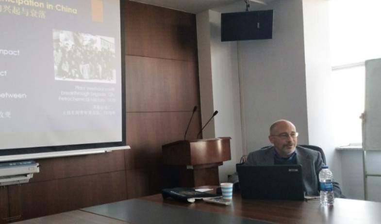 2019年10月14日下午,由吉林大学哲学社会学院主办的哲学社会学院国际化示范基地学术讲座第十六讲,在东荣大厦908会议室举行。美国约翰霍普金斯大学社会学系安舟(Joel Andreas)教授以“中国工厂中的民主参与”为题展开讲座。田毅鹏院长,林兵教授,吴海琳副教授等出席讲座。