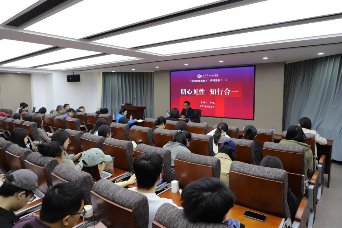 4月28日,系列讲座第一讲在东荣大厦904会议室举办,本次讲座邀请哲学社会学院副院长李龙教授做题为“明心见性,知行合一”的专题授课。哲学社会学院党委书记张晓萌、学院领导班子、两委委员以及学院各党支部的师生党员们共同参加。本次讲座由学院党委副书记、纪委书记赵洁主持。