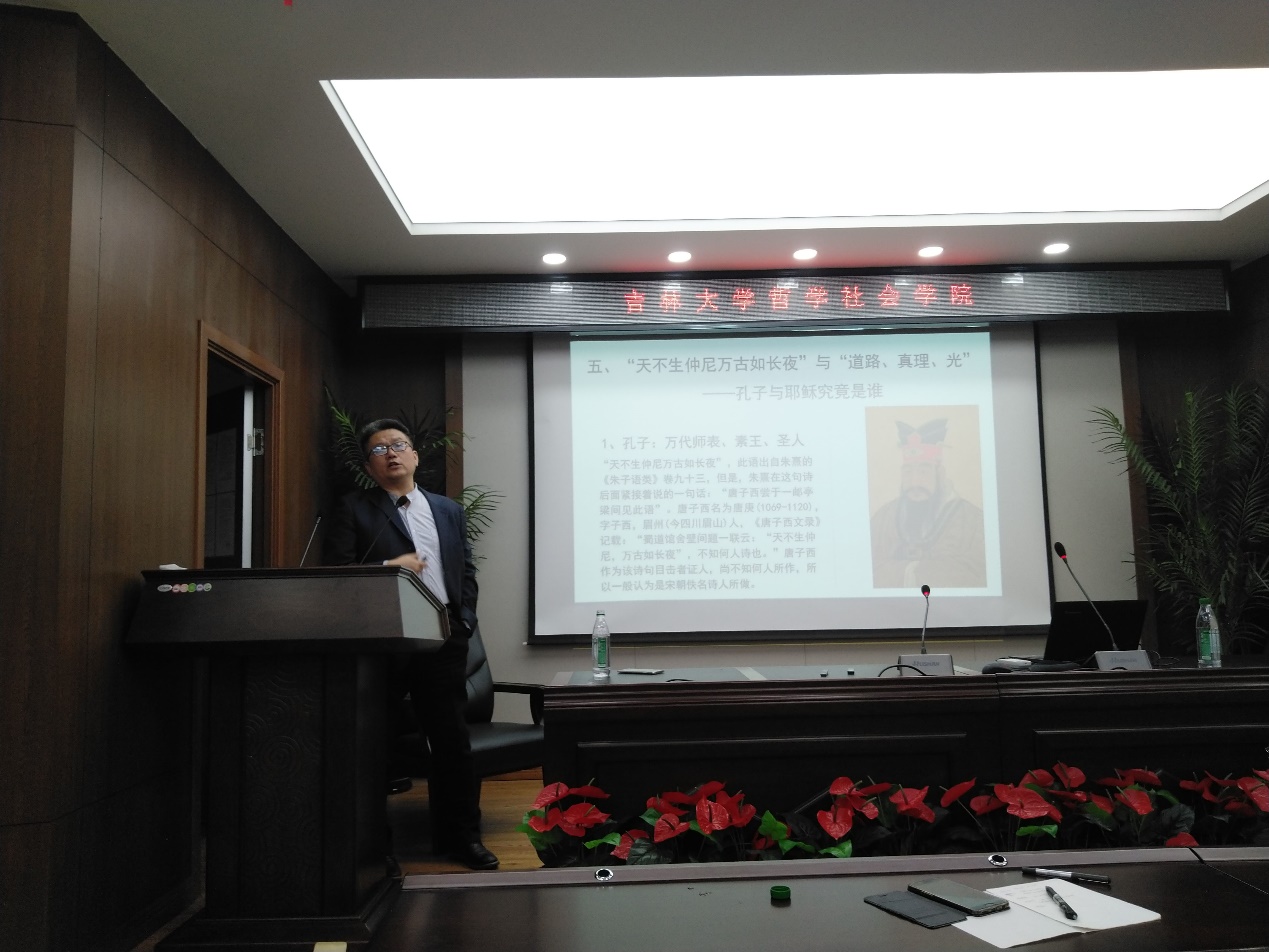 2019年10月14日下午2点30分,吉林大学高清海哲学思想研究中心、吉林大学哲学社会学院、吉林大学哲学基础理论研究中心在吉林大学东荣大厦B303联合举办了“高清海哲学思想讲坛”第12讲暨“哲学社会学院名家讲座”第62场系列讲座。上海师范大学哲学与法政学院哲学系教授樊志辉受邀作主讲人,为吉林大学师生做了题为“或此或比与彼此之间——关于孔子与耶稣的几点比较”的学术讲座。吉林大学高清海哲学思想研究中心副主任韩志伟教授担任主持人。