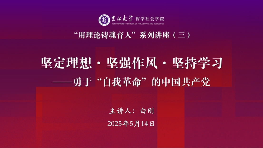 5月14日,系列讲座第三讲在东荣大厦904会议室举办,本次讲座邀请哲学社会学院院长白刚教授做题为“坚定理想·坚强作风·坚持学习——勇于‘自我革命’的中国共产党”的专题授课。哲学社会学院领导班子、两委委员和学院各党支部的师生党员们共同参加。本次讲座由学院党委副书记兼副院长朱大卫主持。