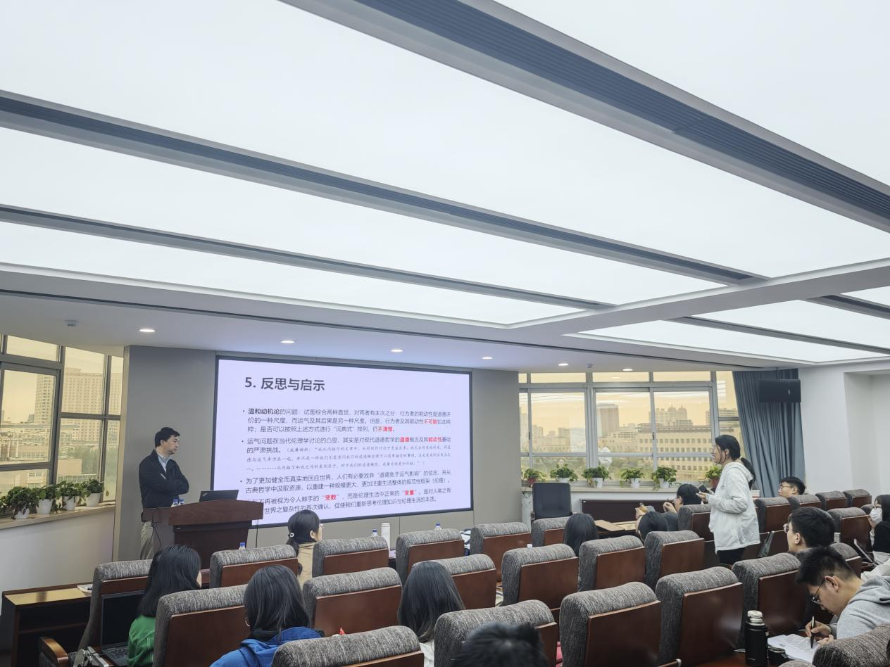 随后,李义天教授同现场师生围绕“道德运气问题在当代伦理学建构中的地位”、“人工智能的道德责任”等问题进行了深入讨论与交流。