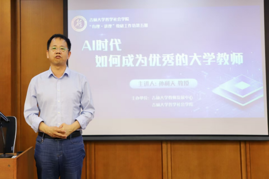 为深入推进哲学学科教育创新发展,推动教师教学能力提升,强化哲学人才培养质量, 6月13日,由吉林大学教师教学发展中心和哲学社会学院联合主办的“有理・讲理”教研工作坊第五期专题讲座在中心校区东荣大厦成功举办。本次活动邀请吉林大学哲学基础理论研究中心副主任、匡亚明特聘教授孙利天做题为“AI时代如何成为优秀的大学教师”的专题授课。