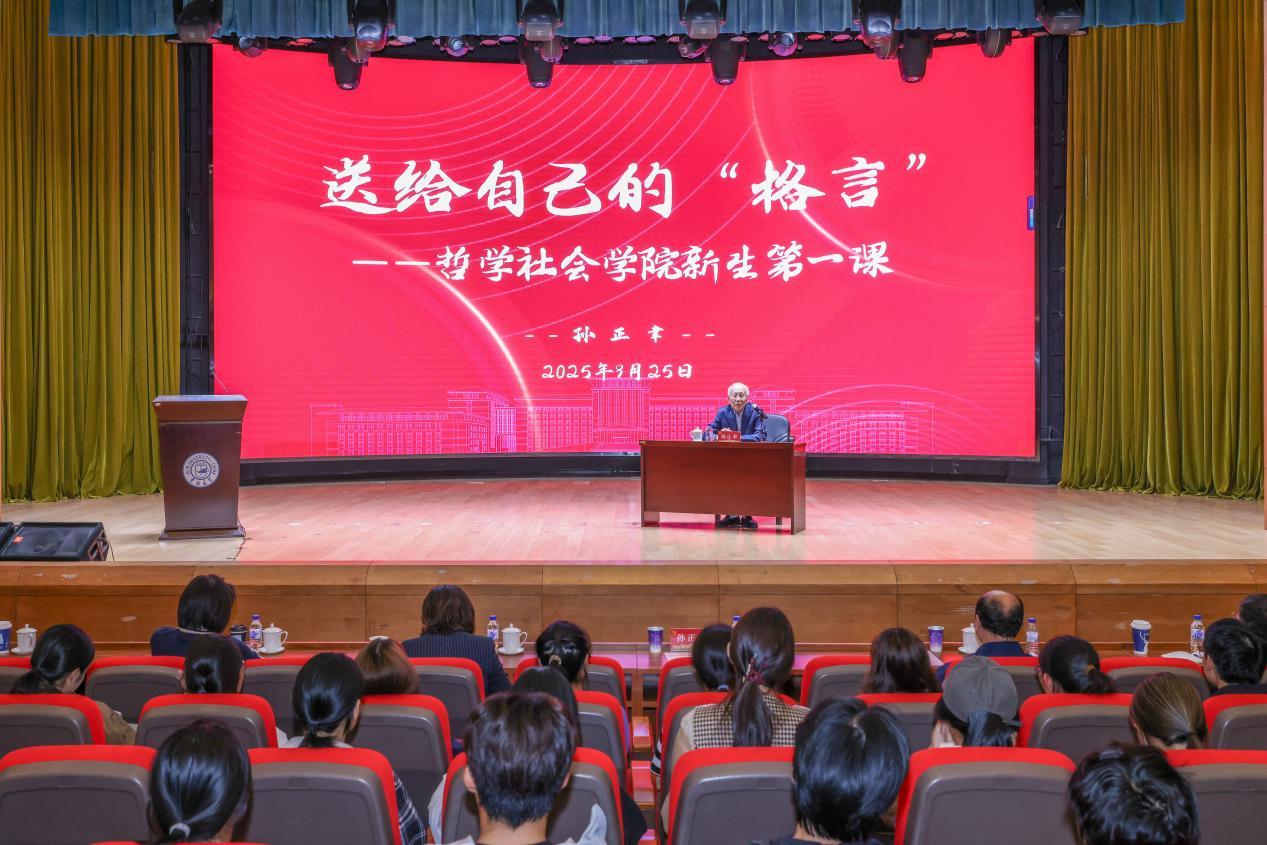 为大力弘扬教育家精神,以我们身边的“大先生”为榜样,引领学院师生强化使命担当,赓续吉大文脉,引导学院新同学们走好哲学社会科学学习探索和深入研究的“第一步”,9月25日,我院在中心校区敬信报告厅组织开展2025级新生第一课暨开学典礼。本次活动邀请哲学社会科学资深教授孙正聿为学院2025级新同学讲授开学第一课。吉林大学社会科学研究院院长曲红梅,哲学社会学院党委书记张晓萌,学院领导班子、各系专业教师和2025级本科生、研究生新生共同出席本次活动。本次活动由学院党委副书记兼副院长朱大卫主持。